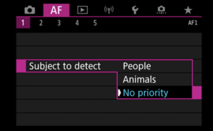 Canon has also included face detection, eye detection, and head tracking for when you are shooting people. There is also head, eye, and body tracking for birds, cats, and dogs. You can even prioritize which one you want to use in the menu. So for example, if you had a scene with an animal and people in it you can choose whether the autofocus will prioritize the people or the animal.