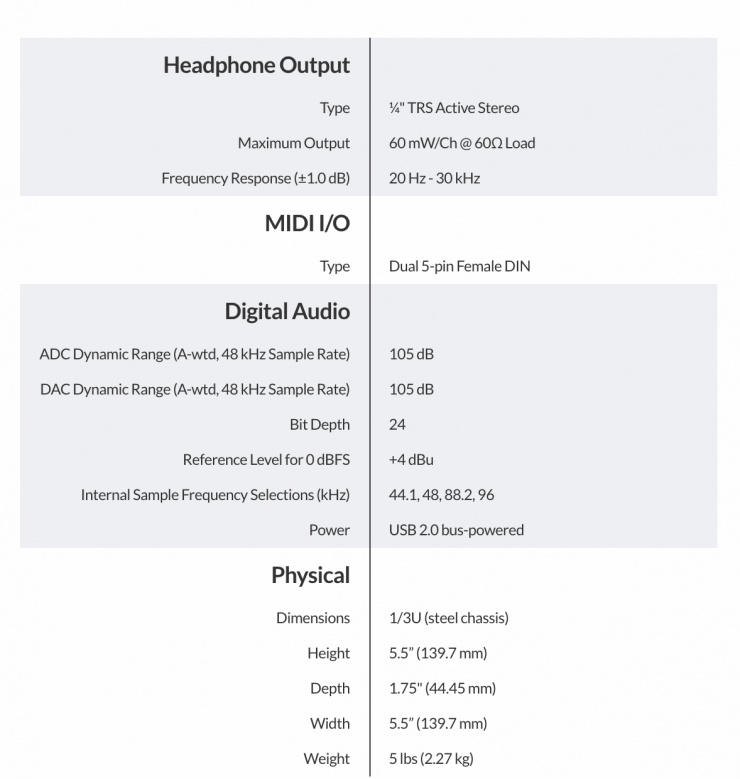You also get a pair of balanced line-level outputs, a headphone output, and a MIDI I/O. Everything is housed inside of a heavy-duty steel chassis.