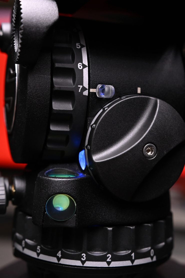 One of the smallest features, but arguably one of the most useful is the way Sachtler has designed the levelling bubble. By using a prism you can see the bubble even when the head is too high to view from above.