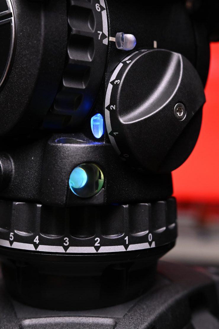 If you press on the button to illuminate the bubble, it not only lights up the bubble, but it also illuminates both the pan and the tilt tension mechanisms.