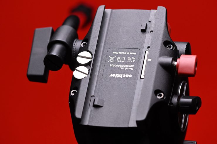 Because you don’t have to undo a traditional ball leveling clamp, you can remove the Aktiv 8 head from the Flowtech 75 really quickly. It utilizes a system that Sachtler is calling SpeedSwap.