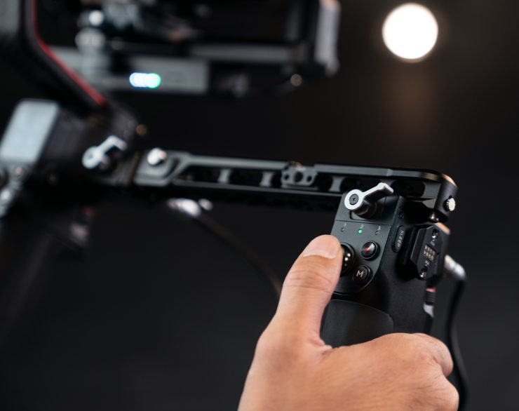 The built-in front dial above the trigger allows for focus control and complements a DJI Focus Wheel mounted on the RSA port to create two-channel focus and zoom.