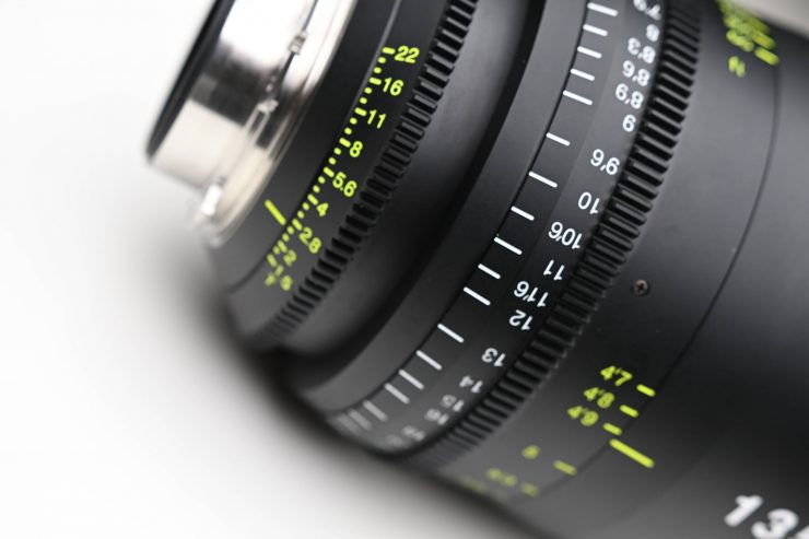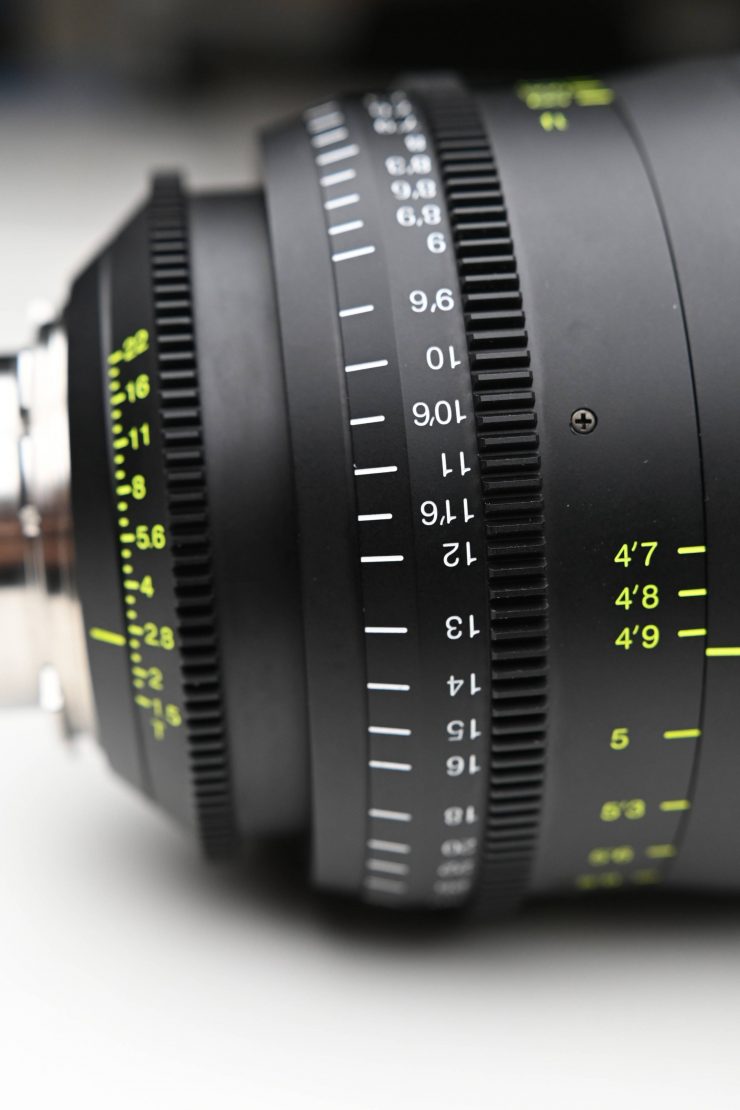 The markings are easy to read and can be seen on both sides of the lens. On the operator’s side, they are white in color, and on the cameras assistants’ side they are a fluoro yellow.