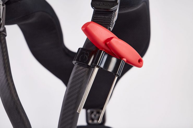 The adjustable socket blocks on the retraction brackets can also be telescopically extended in width to adjust clearance from the sides of your body according to your body size.