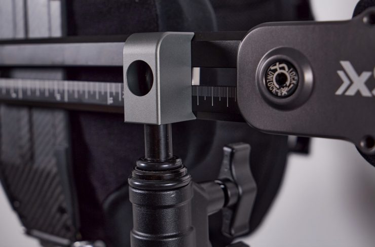 Apart from the vertical Z-axis isolation, it also allows the operator to pan at both sides while walking in straight lines, and also offers a very big linear boom range thanks to the retraction brackets at the back allowing the operator to boom all the way from over eye level to low mode camera lens positioning in a straight vertical line.