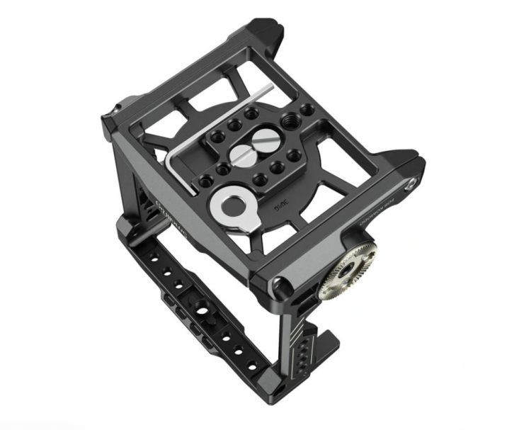 Various SmallRig accessories such as monitor mounts and handgrips can be added to the cage.