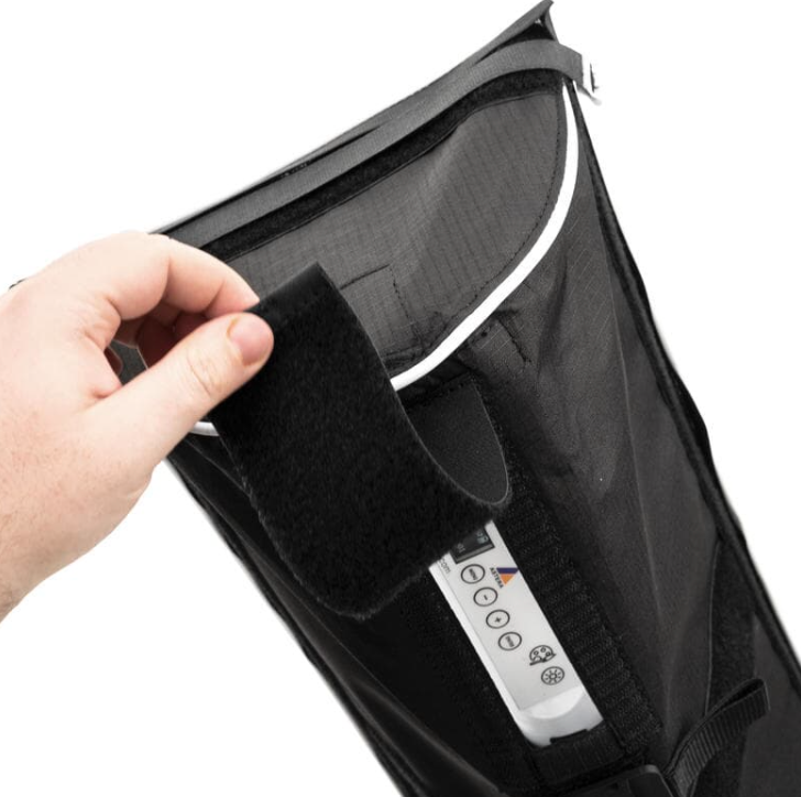 On the back of the SnapBag, there is a velcro panel so you can directly access the Titan/Helios controls and run a power cable out if you are not running the fixture on batteries. Again, by making a tailored solution for certain lights, little details like having direct access to the controls can be achieved.