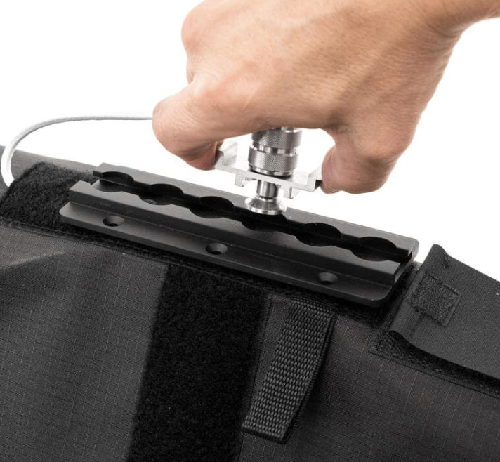 The SnapBag features an all-new secure and intuitive mounting system called the Airline Track and Pin. This is a really nice, robust solution.