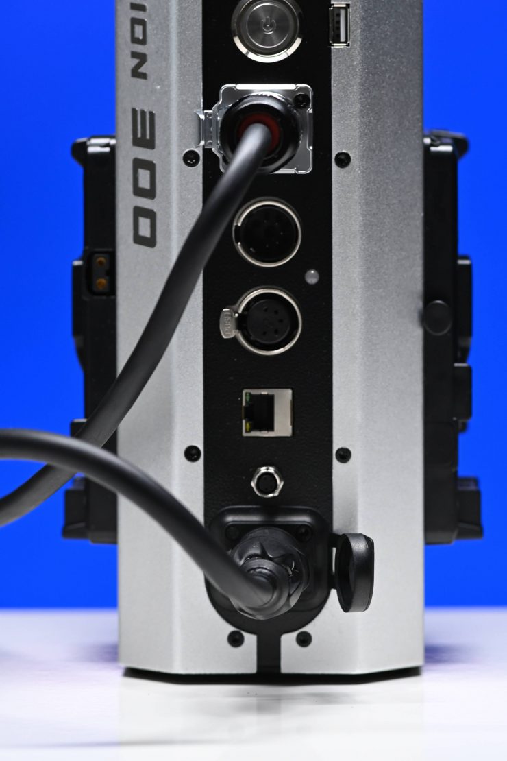 The light can also be run off V-lock batteries as the controller/power supply features dual V-mount battery plates.