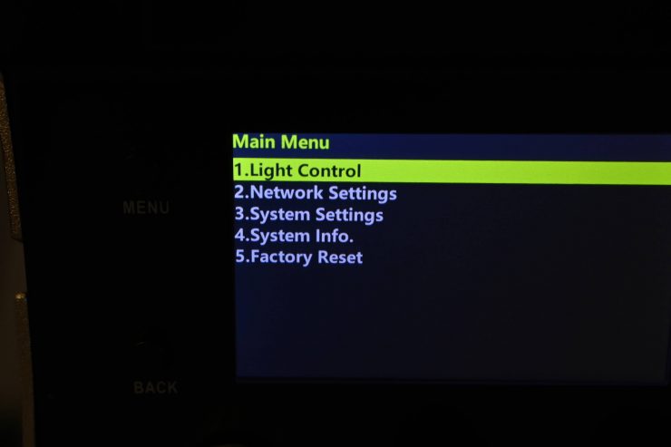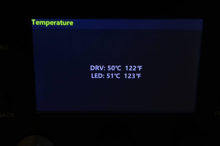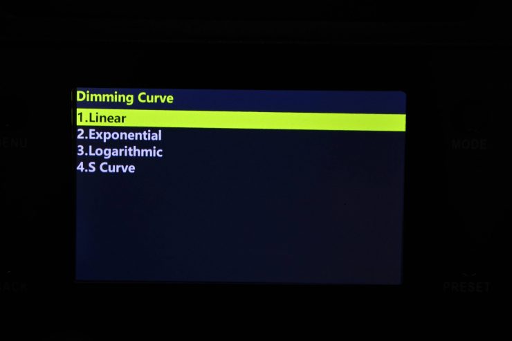 The menu also gives you the ability to adjust the dimming curves, the fan speed, check the operating temperature of the fixture, update firmware, etc.