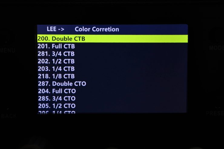 You can select 5600K or 3200K and then the selection of gels you see will change.