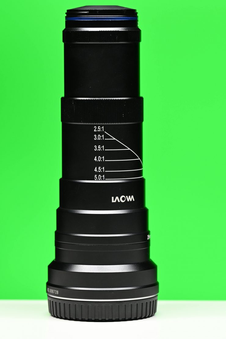 The majority of macro lenses feature a 1:1 reproduction ratio. In the case of the Laowa lens, it has a 2.5:1 to 5:1 range. This allows you to capture tiny objects at 2.5 to five times their actual size.