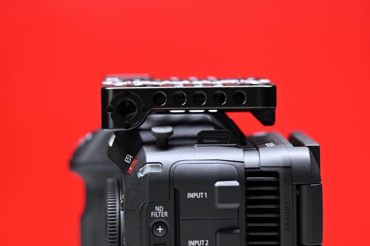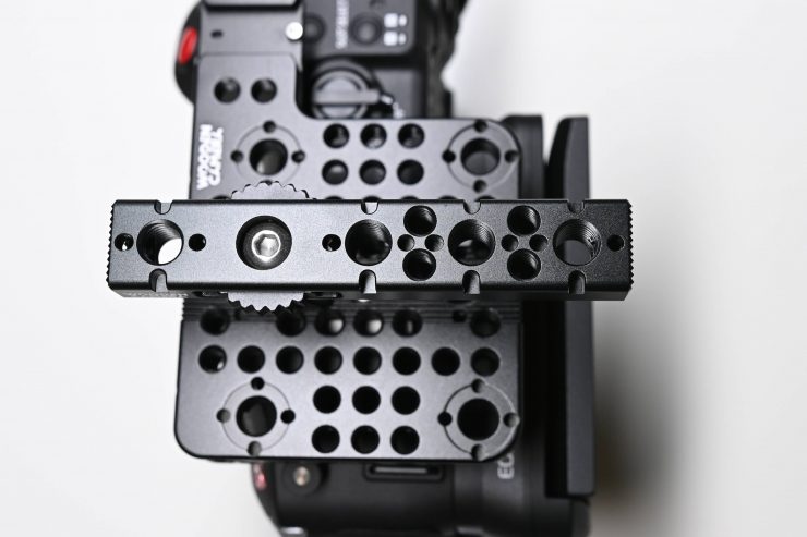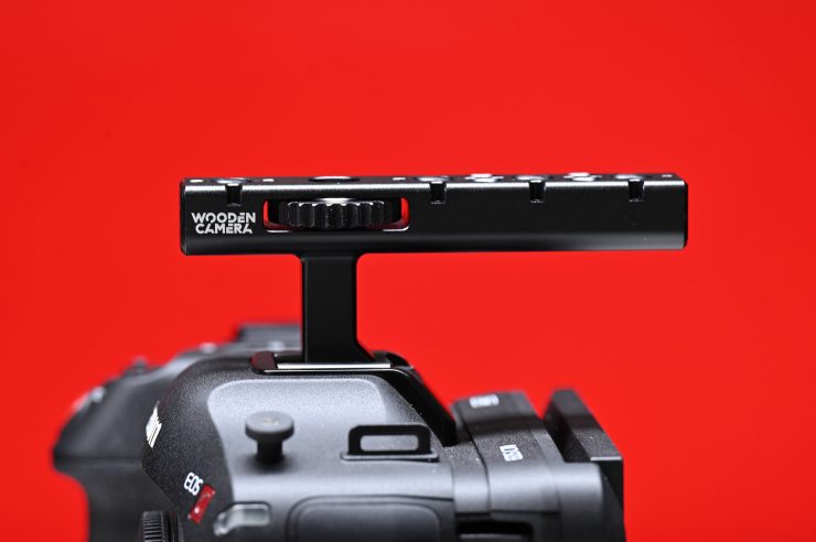 You could attach the original Canon top handle to the cheese plate, but because it only attaches through one screw it is prone to twisting. While you could do it, I wouldn’t recommend it.