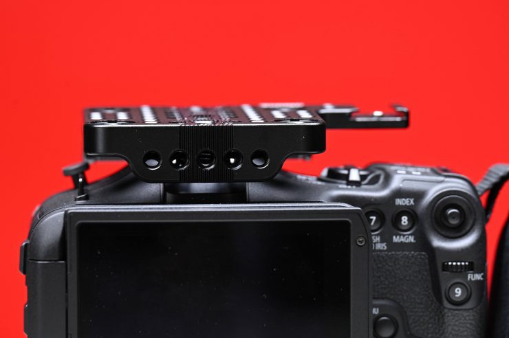 There is also a Cold Shoe offset which you can use to attach microphones, small lights, etc. The nice aspect about the top plate is that it doesn’t get in the way of any of the buttons, dials, or switches.