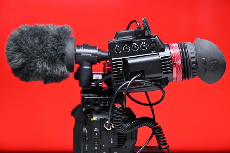 I rigged up a Zacuto Gratical and a Zacuto mounting system to the Top Plate and I also added a Sanken CS-M1 shotgun microphone by putting it inside a Sony CAC-12 Camera Microphone Holder.