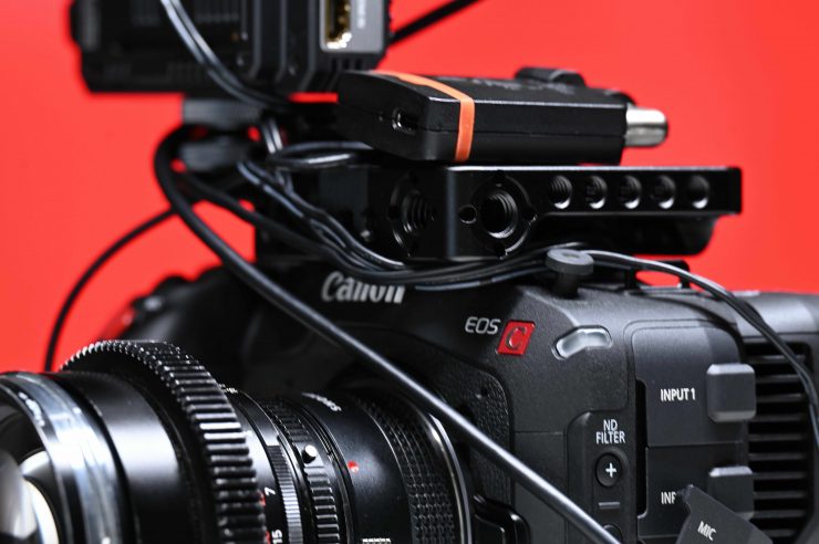 One of the appeals of the Canon C70 is that it is a relatively small and compact digital cinema camera. However, if you do want to mount some basic accessories it is extremely hard because of the lack of mounting points.