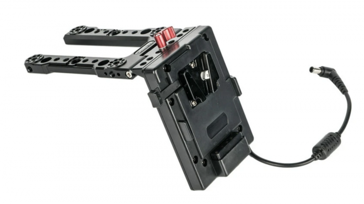 This is an adjustable V-Mount Battery Plate that allows you to attach V-Mount batteries to the Sony FX6. The plate includes a DC 19.5V output that you attach directly to the camera.