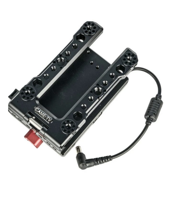 The plate also features a 14.8V D-Tap outlet and it attaches directly to the top of the FX6. In a nice move, CAME-TV has added the small attachment points where you can attach the standard LCD screen.