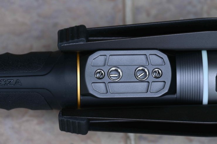The Slypod Pro does have physical controls on the bottom of it. There is a On/Off button and by pressing on this same button twice you can use that same button to stop the Slypod Pro if it is moving. If you press the button three times you can make it return to its original starting position. There are also + and – buttons for making the Slypod Pro go out or come back in. The more times you press them the faster or slower the device moves.