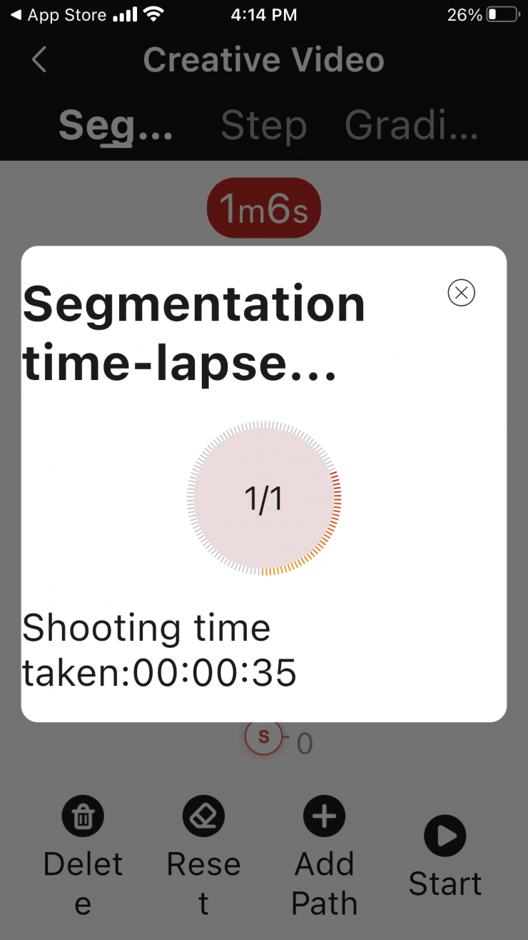 In this Creative Video Mode you can also choose items such as the Cycle Setting where you can tell the app how many times you want it to go back and forth.
