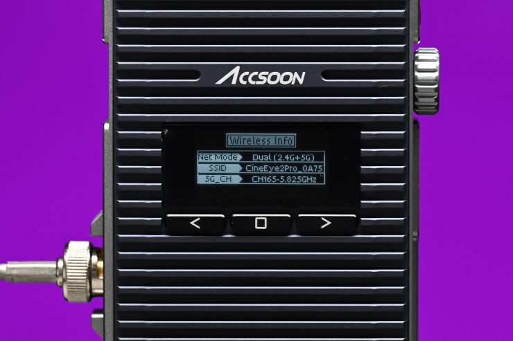 The CineEye 2S Pro utilizes dual-band transmission technology, which allows it to stream video via 2.4GHz and 5.8GHz Wi-Fi at the same time. The receiver can then intelligently identify interference and combine the two streams to form the complete audio and video stream. According to Accsoon, this greatly improves its stability and anti-interference capabilities.