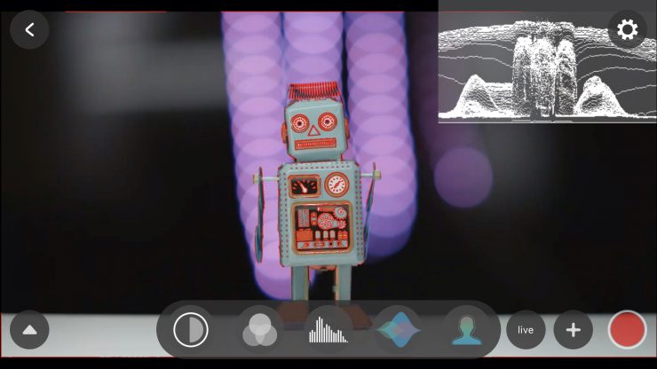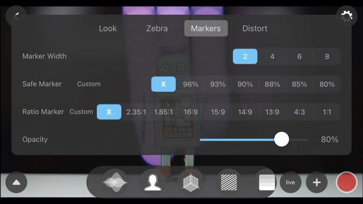 UPDATE: The latest iOS App(1.5.0) that was just recently released has added marks on the waveform and audio levels. Additionally, the focus peaking color can now be changed on the menu, users can select Red, Green, Blue, and White.