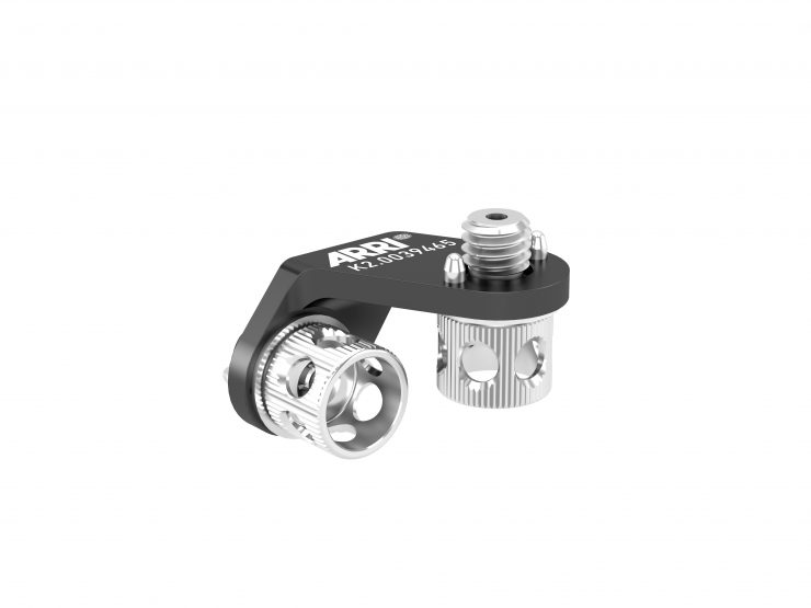 ARRI has also developed its own Hi-5 monitor bracket which utilizes the NATO rail. It features monitor locating pins and you can tilt it up and down or move it along the NATO rail.