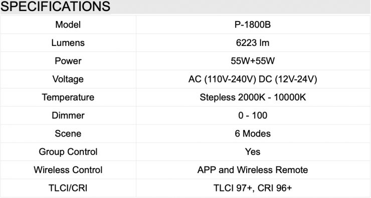 As the name suggests, the Perseus Bi-Color 55W Travel Lights draw 55W and CAME-TV claims that they can output 6223lx @1m. They are Kelvin color adjustable from 2000K-10,000K and they feature 6 different special effects modes.