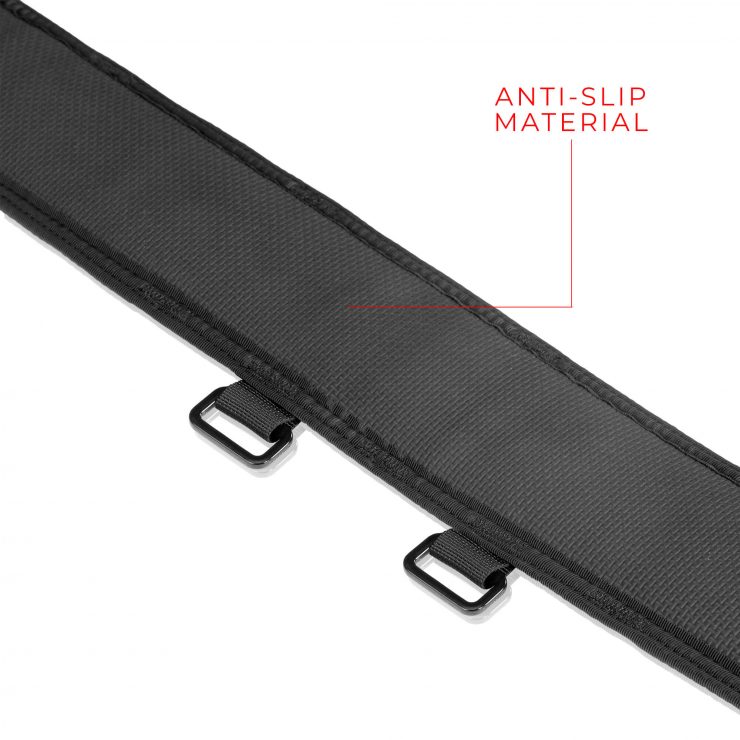 Made of double-layer nylon on the outside, it provides a secure attachment for several film and TV accessories. Anti-slip material on the inside offers grip so the belt doesn’t slide or slip. Its core has a rigid plastic frame for back support. The belt is adjustable from 91 to 121 cm (36 to 48 in.).