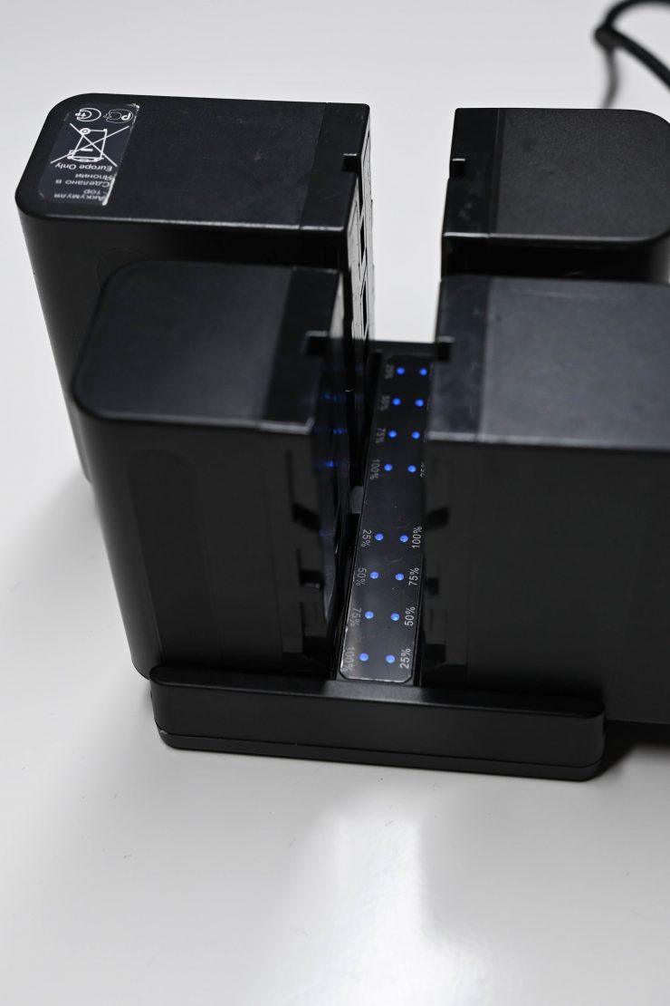 The other nice aspect about the charger is that you can plug it in and attach a battery and it will show you how much charge it has left. This is very handy as a lot of Sony NP-style batteries don’t have any battery indicators on them.