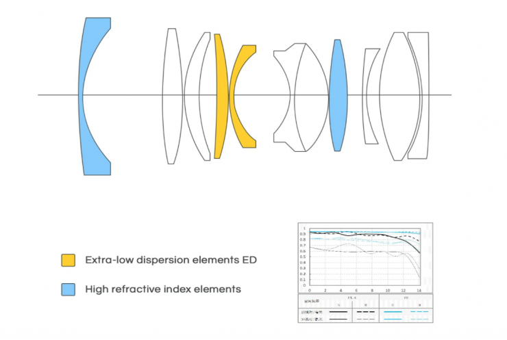 The optical design consists of 10 elements in 9 groups, a pair of extra-low dispersion elements, and a pair of high refractive index elements, which are claimed to combine to suppress a variety of aberrations and produce high sharpness, clarity, and color accuracy. An HD Nano multi-layer coating has also been applied that is said to reduce flare and ghosting for greater contrast in bright and backlit conditions.