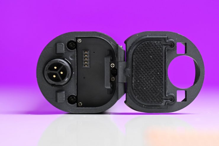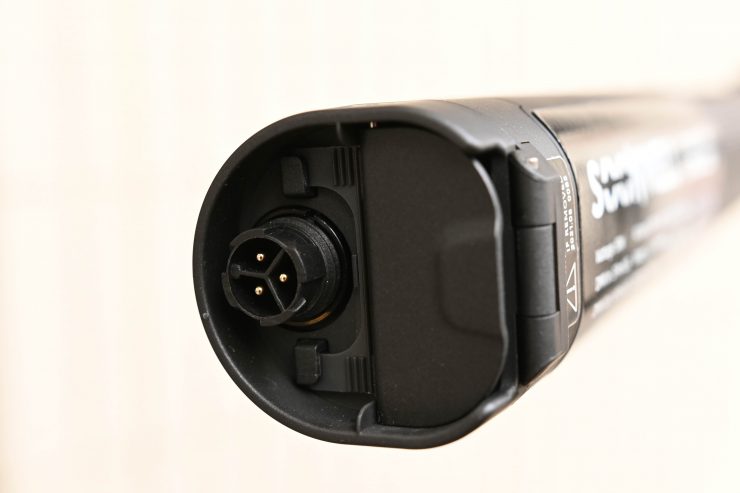 The charging port for the battery is not at the top of the battery, so you can’t just open the hatch on the Sensei Tube and then plug it in.
