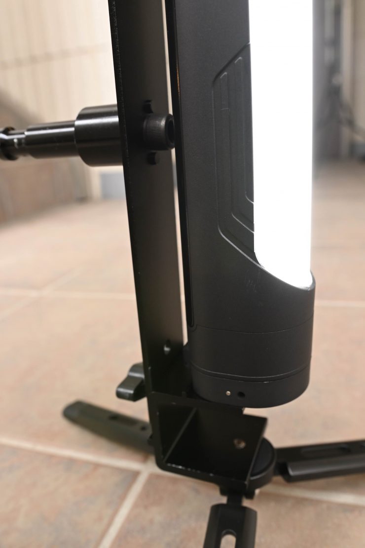 Instead, you need to build this overly complicated rigging solution by using the two included mounting brackets and then attach the included mini tripod to that mounting bracket. Despite making this large mounting solution, the light does not feel very secure when you mount it vertically. As I mentioned earlier in the review if you want to run the light via mains power in this configuration and have access to the onboard controls good luck!