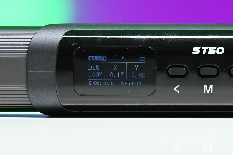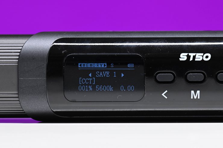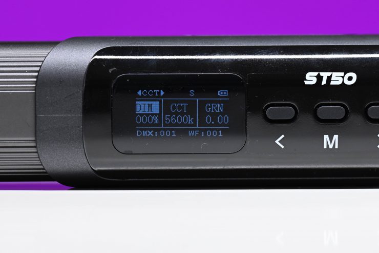 There is a normal CCT Mode where you can adjust the Kelvin color temperature between 2700K to 6000K. There is also a wide temperature mode where you can set the light from 1600K to 20000K. There are also controls to make +/- Green/Magenta adjustments.