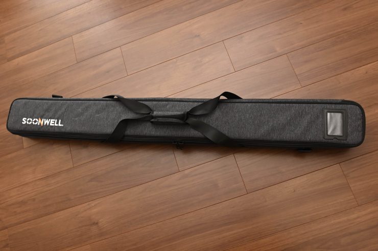 The light comes in a soft/hard bag, which is probably robust enough to transport on a plane if need be. It is nice that you get a bag like this instead of a completely soft bag that you can’t use for anything other than storage.