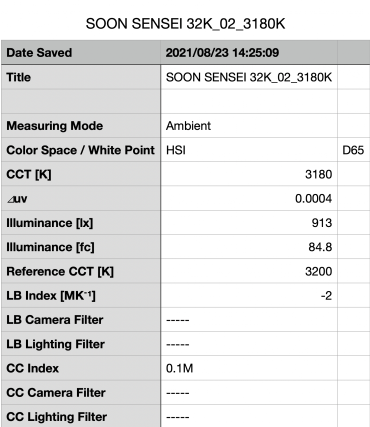 As far as Kelvin color temperature accuracy goes, it recorded a very accurate reading of 3180K.
