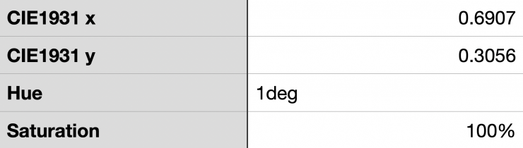 If we look at how well the light replicates a fully saturated Red, you can see above that it does a good job, however, the Hue did shift by 1-degree.