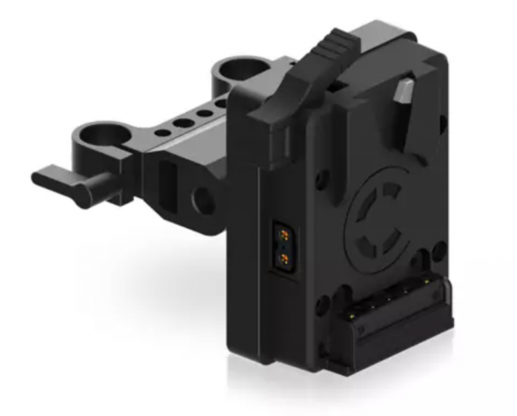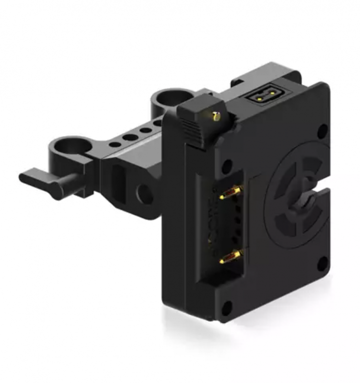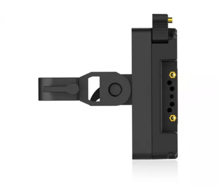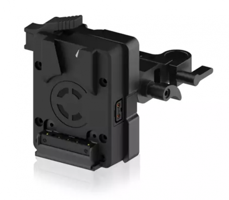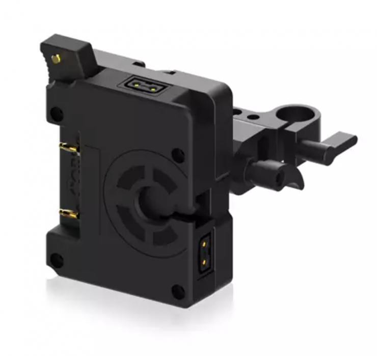 The bracket works with all 3-stud battery packs to provide a secure mounting surface for your rig and it articulates with slide positioning to easily adjust to how you would like it situated on your setup. In addition, it has two P-Tap outputs for powering accessories.