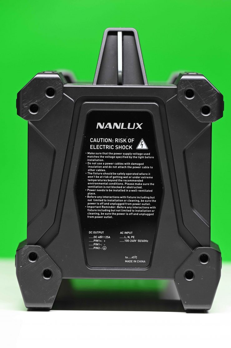 I like that Nanlux has put all of the input and output connectors on one end of the power supply. This allows you to stand it up vertically if need be. They also put eye-bolts on the carrying handle so you could actually use it as ballast and attach it to a light stand or other equipment.