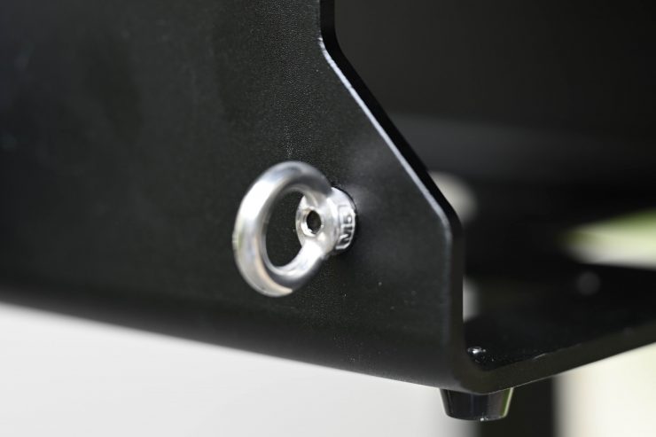 On the Evoke 1200’s yoke frame there is a large eye bolt so you can securely fasten the fixture if need be.