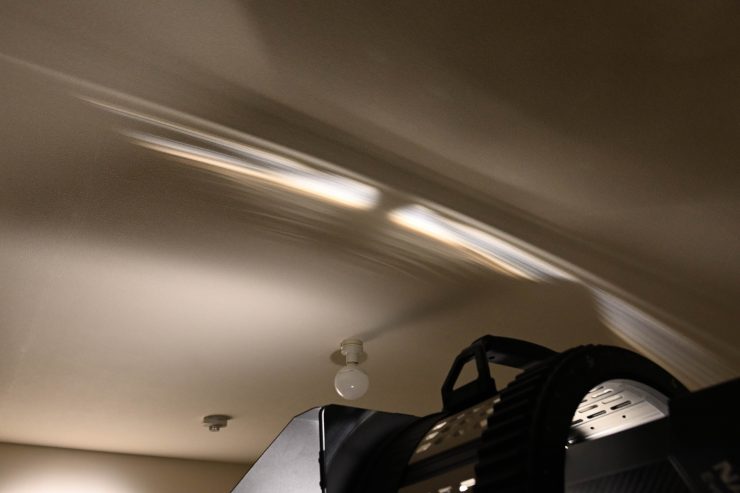 The Evoke 1200 is a very, very bright fixture no matter how you use it. Having a light with a lot of output is always nice because you can heavily diffuse it when needed, or use it to create a very hard light source by punching it through a window, etc. Above you can see what the light looks like with the F-35 Fresnel set at 11° with the subject a little over 5m / 16.4′ away from where the fixture is. You can see that even at 11° the beam spread is still fairly wide because the size of the Fresnel is so big.