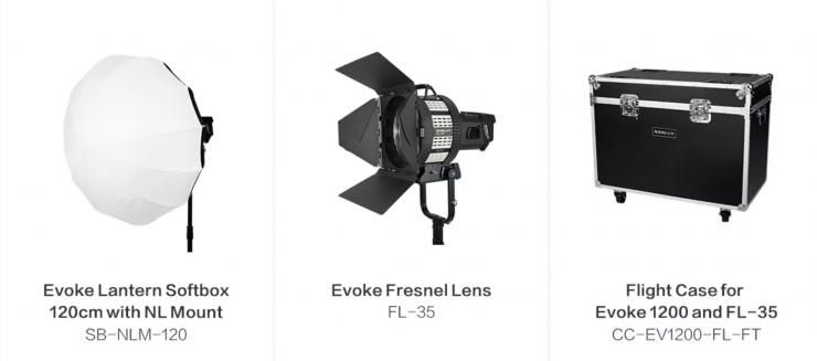 Nanlux does make a few accessories for the Evoke 1200, including softboxes, a Fresnel, flight cases, and a longer connector cable.