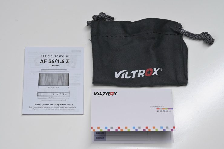 The lens comes in a nice box with an instruction manual, warranty card, lens hood, lens bag, and lens hood.