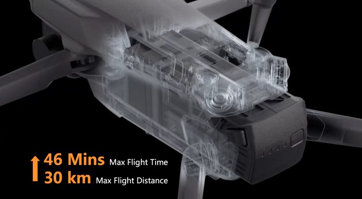 DJI developed new motors and propellers with higher energy efficiency. They also created a higher-capacity battery and reduced the weight of the drone’s structure and components. The new battery has a capacity of 5000 mAh which is a big increase from the 3850 mAh battery used in the Mavic 2 Pro.