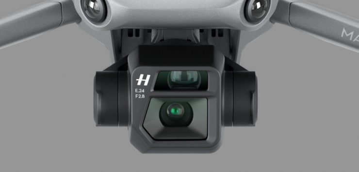 The Mavic 3 and Mavic 3 Cine are the first DJI drone to incorporate two cameras and two sensors. These two cameras, although independent of each other, are housed in the same 3-axis gimble.