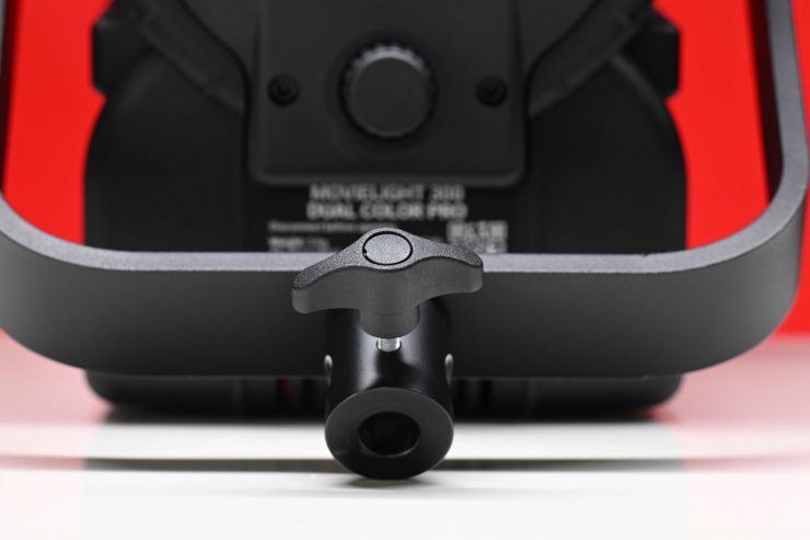 On the back of the Movielight 300 Dual Color PRO, there is actually an adjustment knob. This actually allows you to move the LED array backward or forwards a tiny bit depending on the type of lighting modifier you are using.