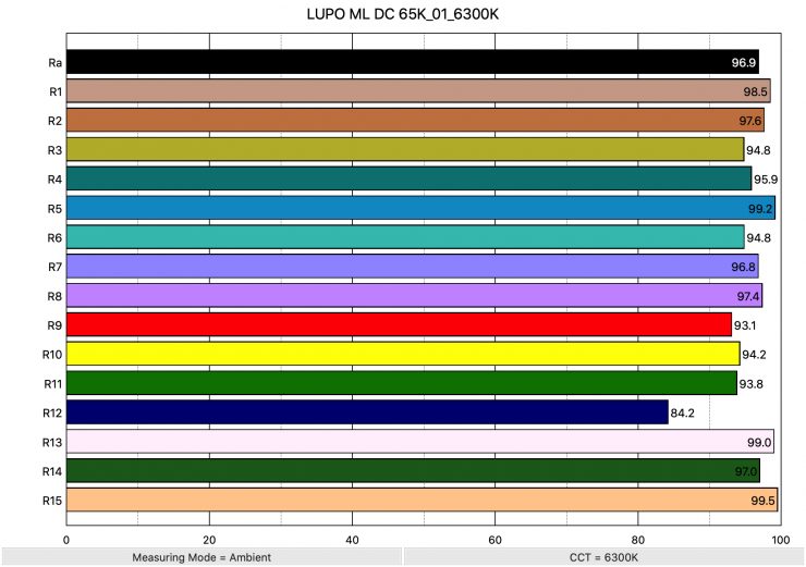 Above you can see the scores for the Lupo Movielight 300 Dual Color PRO at various Kelvin color temperatures. Below I have listed the figures as well.