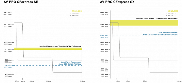 The new CFexpress SE media cards are backed up with Angelbird’s Stable Stream Guaranteed Sustained Write Performance. Angelbird states it won’t throttle or drop speed during video recording or continuous mode shooting.