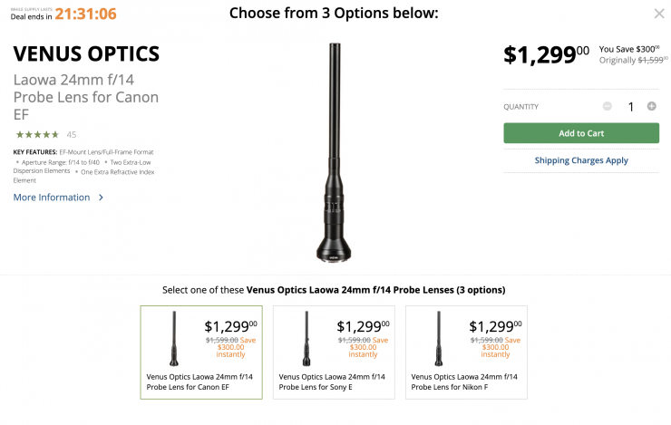 I also own the Venus Optics Laowa 24mm f/14 Probe Lens and have found it to be a very unique piece of glass. The lens is on sale for $1,299 USD which is a saving of $300 USD. This deal is for the Canon EF, Sony E, and Nikon F versions.