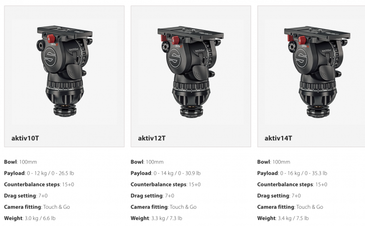 Sachtler has expanded its range of aktiv fluid heads with the announcement of the new aktiv10T, aktiv12T, and aktiv14T 100mm fluid heads.